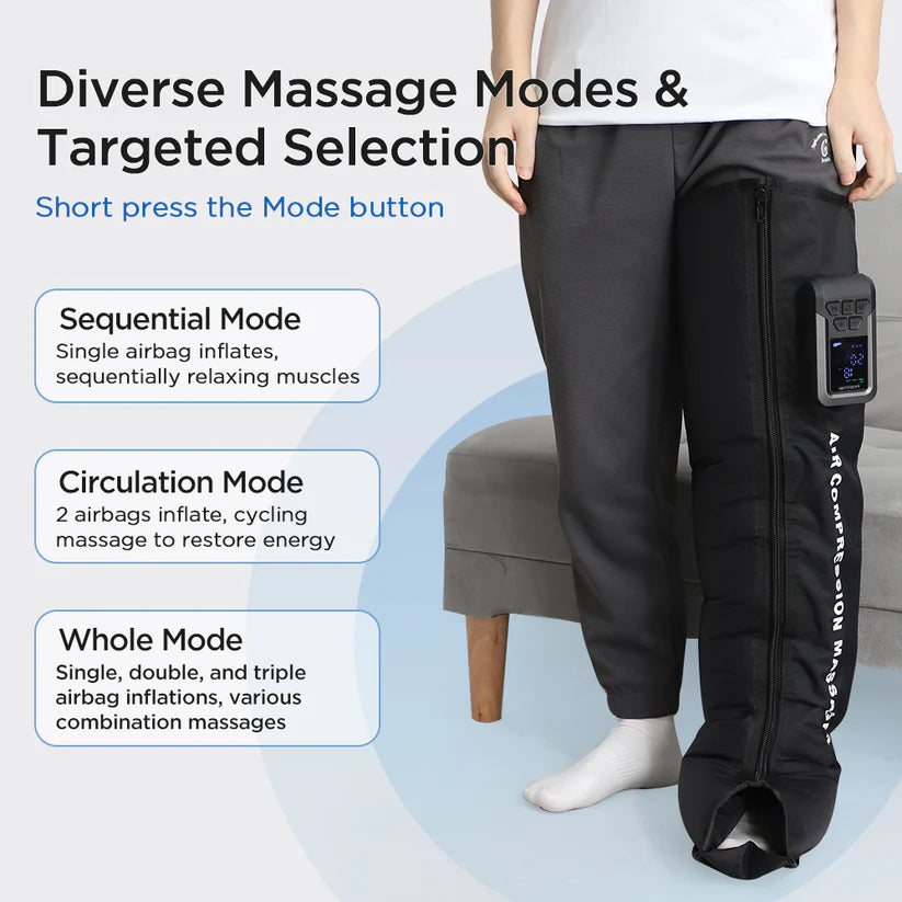 1. This leg massager is equipped with a 3D airbag pressure system that achieves 360° full-wrap coverage, ensuring every inch of the leg receives a comfortable massage, providing a comprehensive and balanced massage experience for the legs.