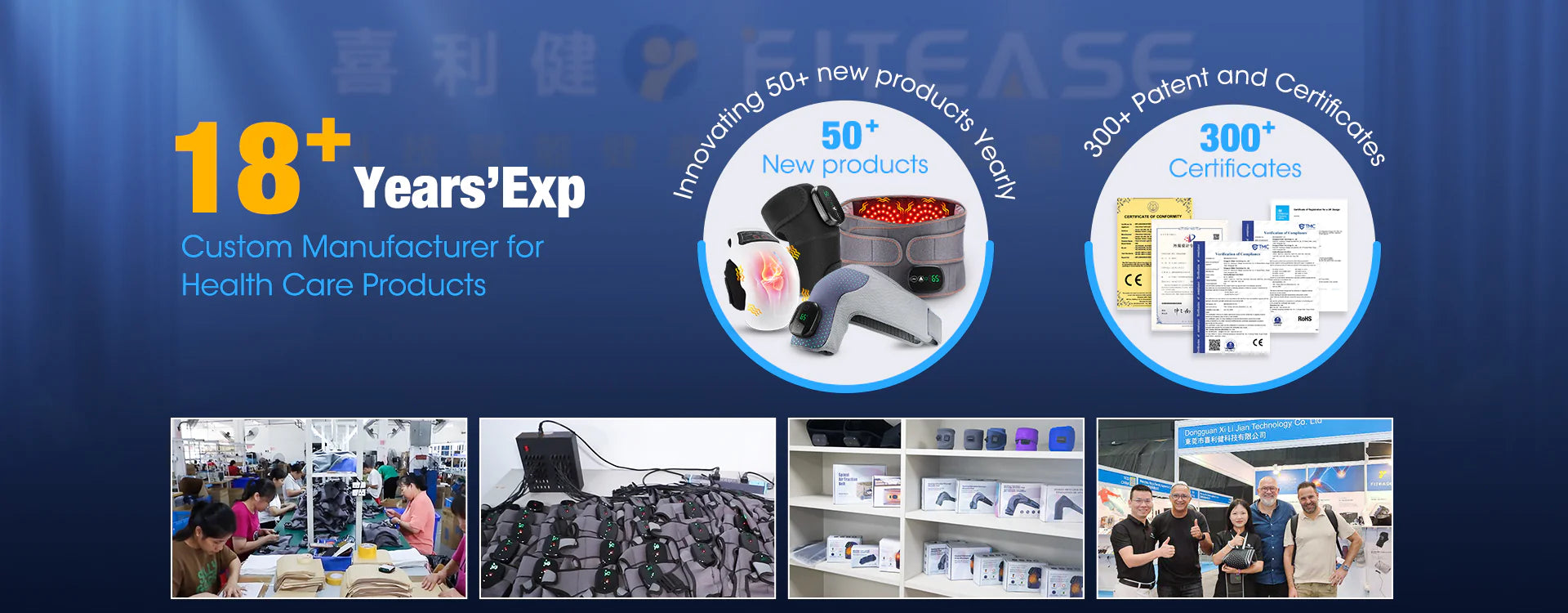 Fitease was born in 2022 in Dongguan, China —a city known as the “Factory of the World” and a global hub of manufacturing. In our modern facility spanning over 2,000 square meters, every detail matters. With professional sewing equipment and skilled artisans carefully stitching every seam, and an independent R&D team that continues to innovate—holding multiple patents at home and abroad—we blend modern technology with traditional craftsmanship to create personal healthcare gear that breathes with you.
